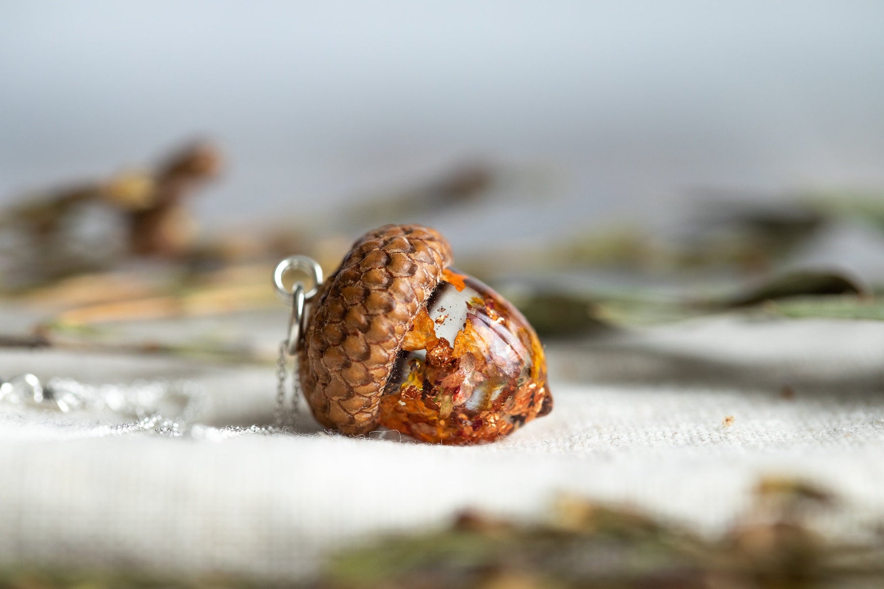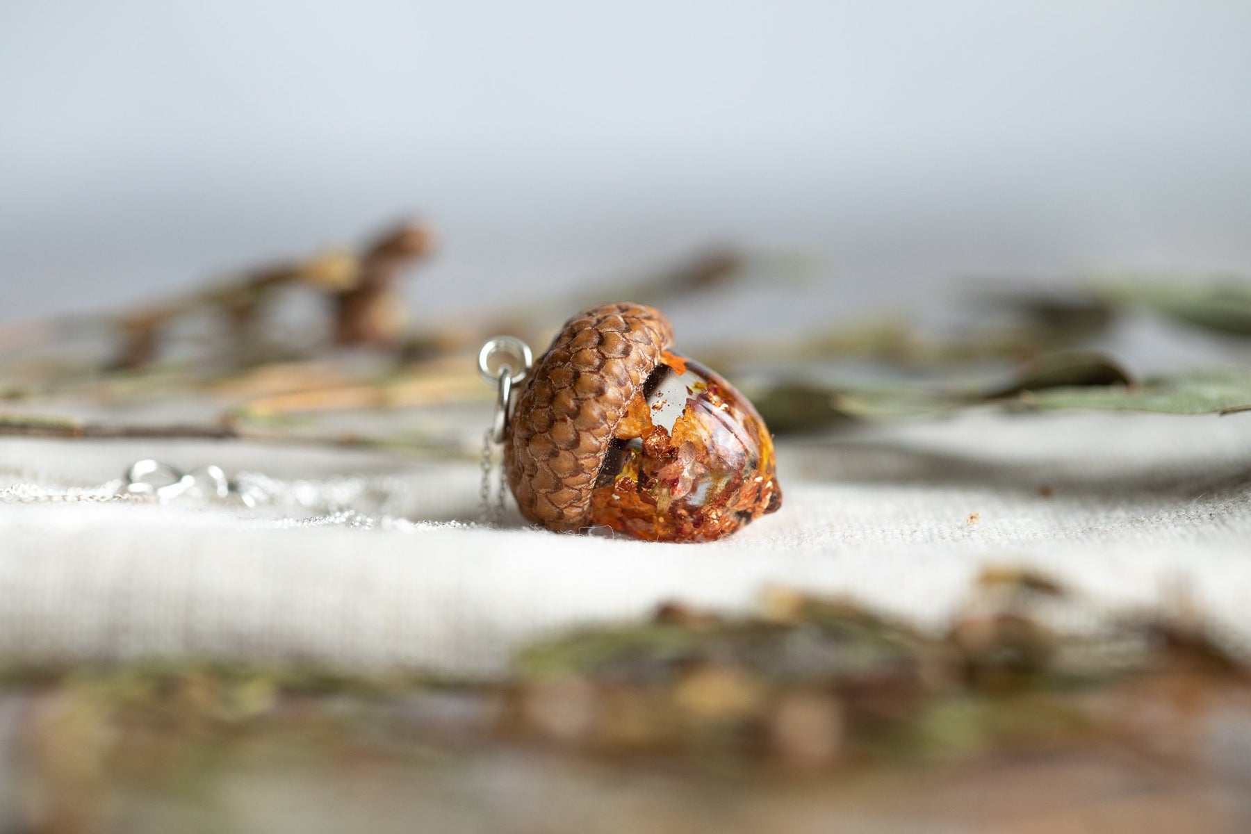 Real Acorn Silver Necklace