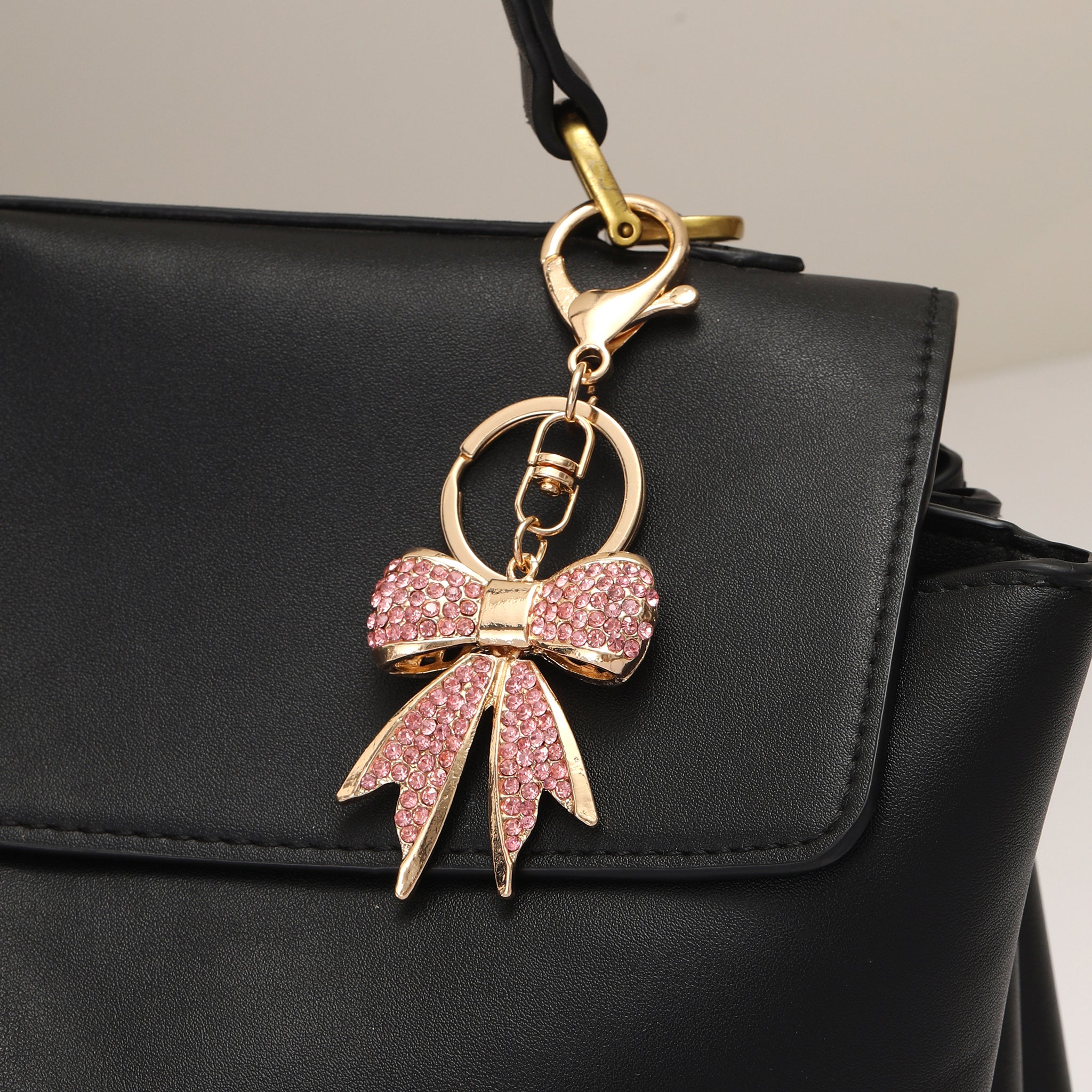 Studded Crystal Pink Bow Bag Charm for Women